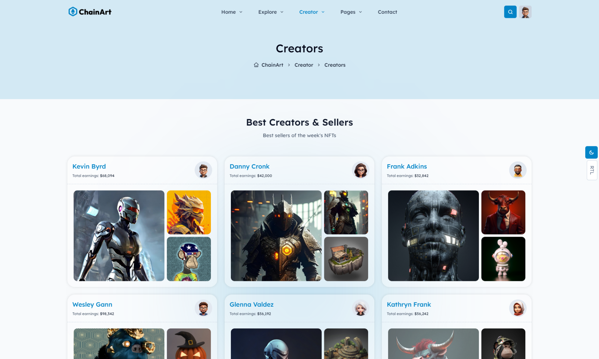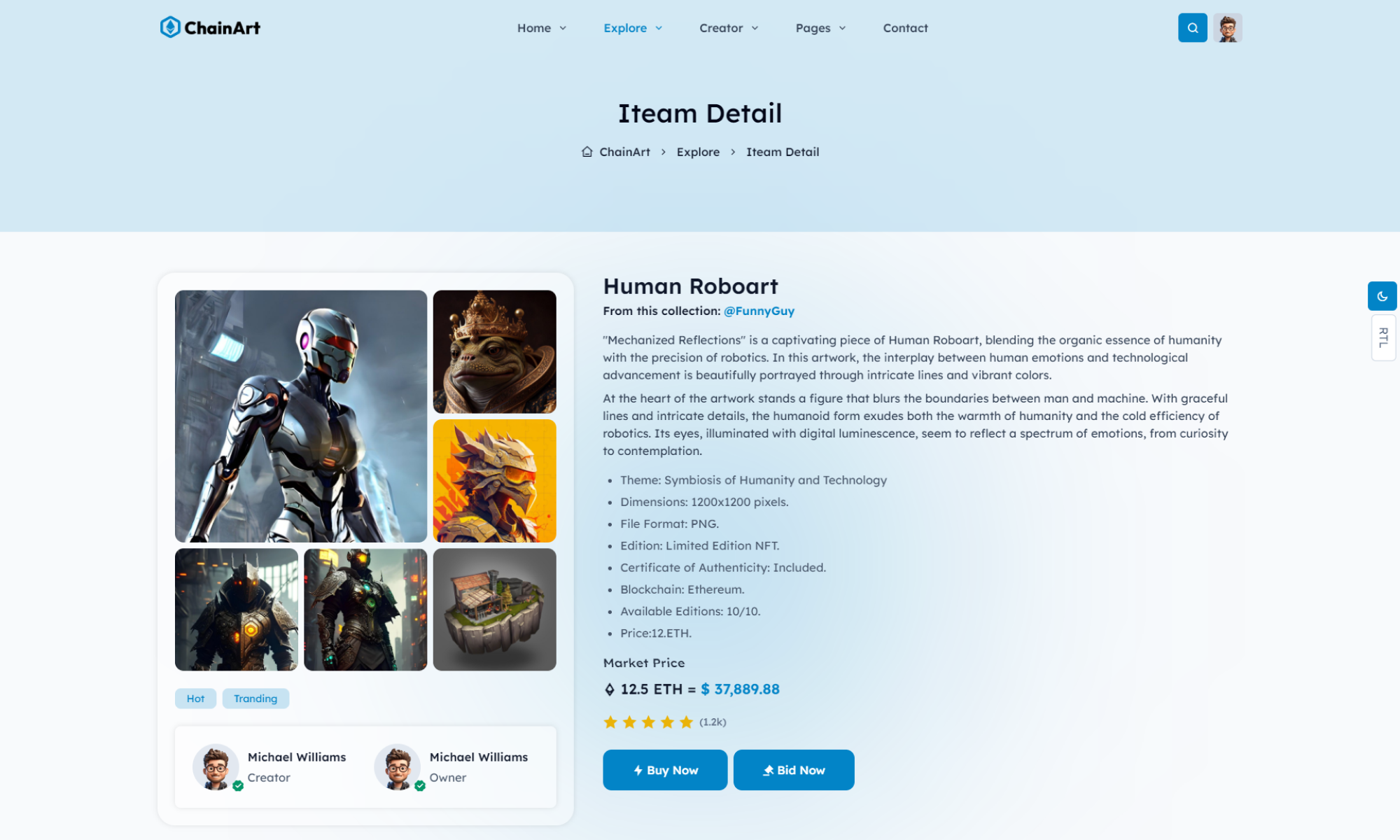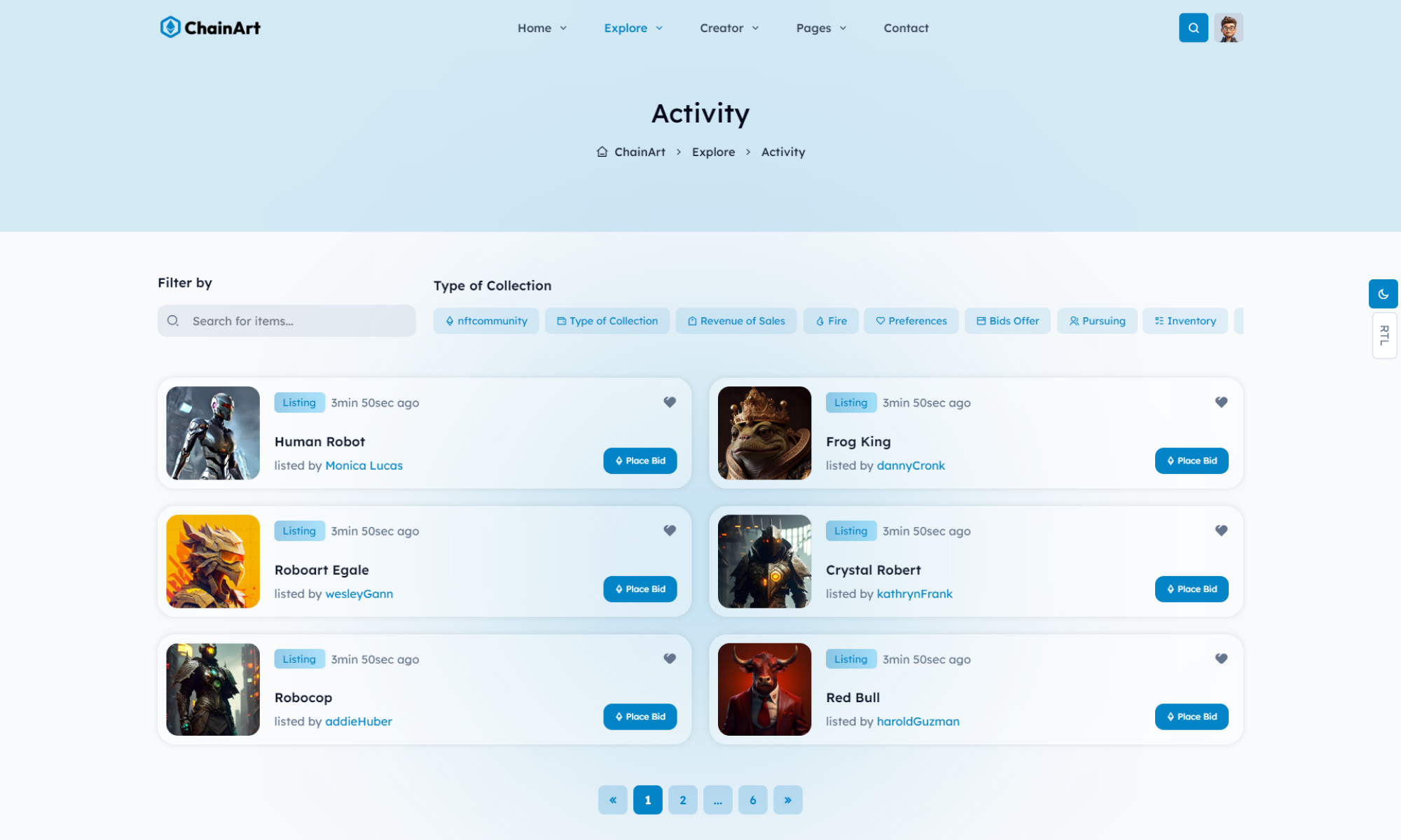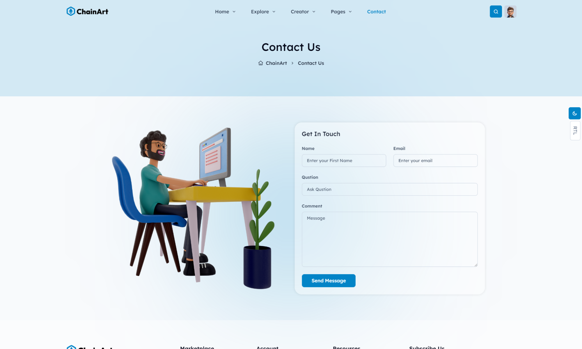 ChainArt supports right-to-left (RTL) languages on both home and inner pages. This includes Arabic, Urdu, Hebrew, Persian, and others, which are predominantly written from right to left. Many countries utilizing these languages have built their NFT websites using our ChainArt template.
