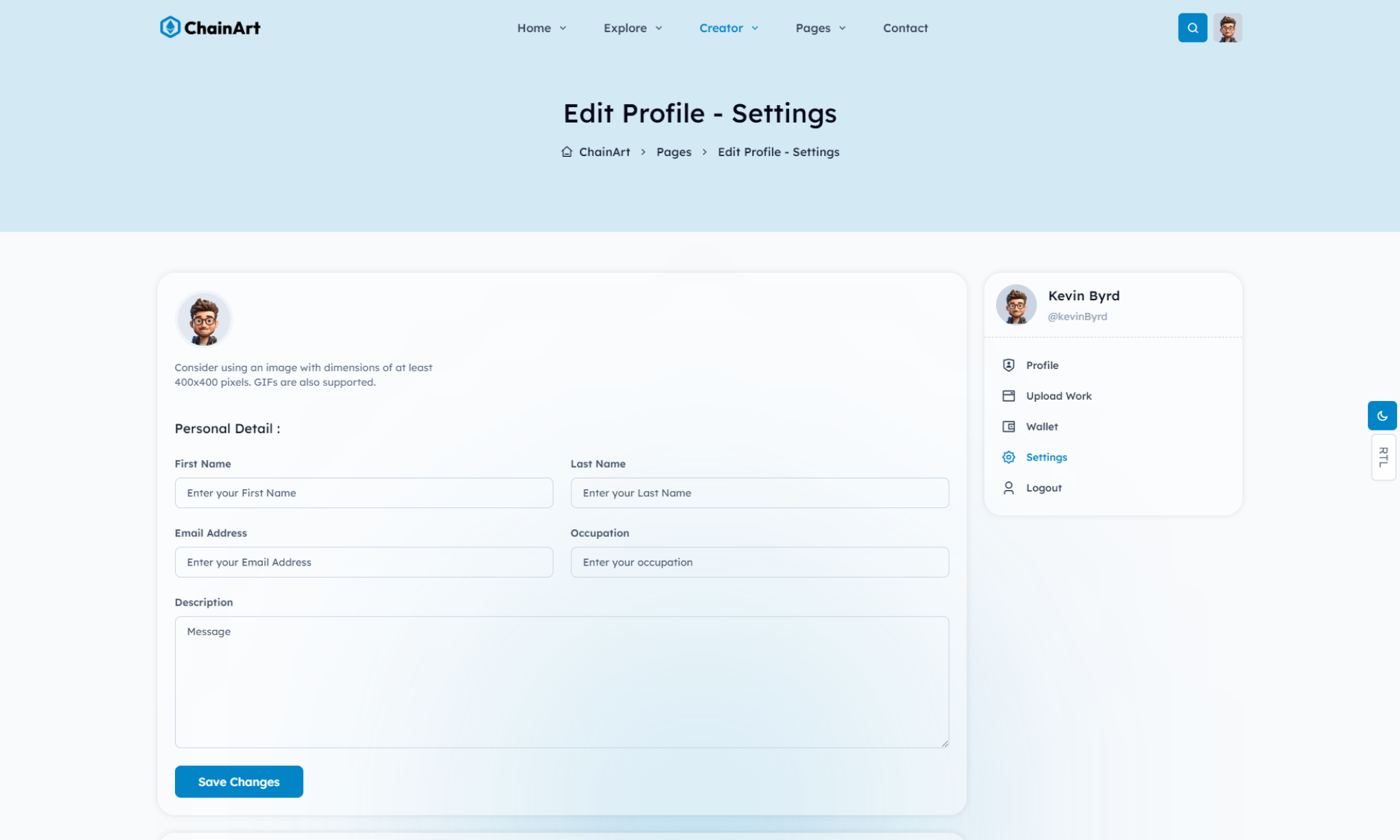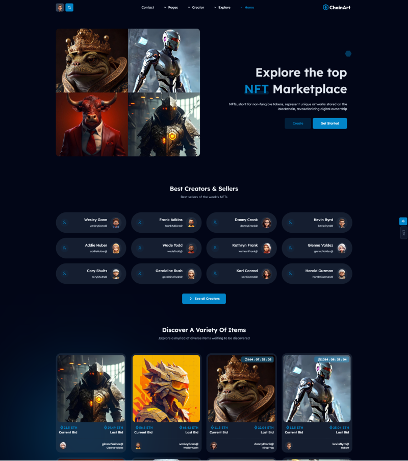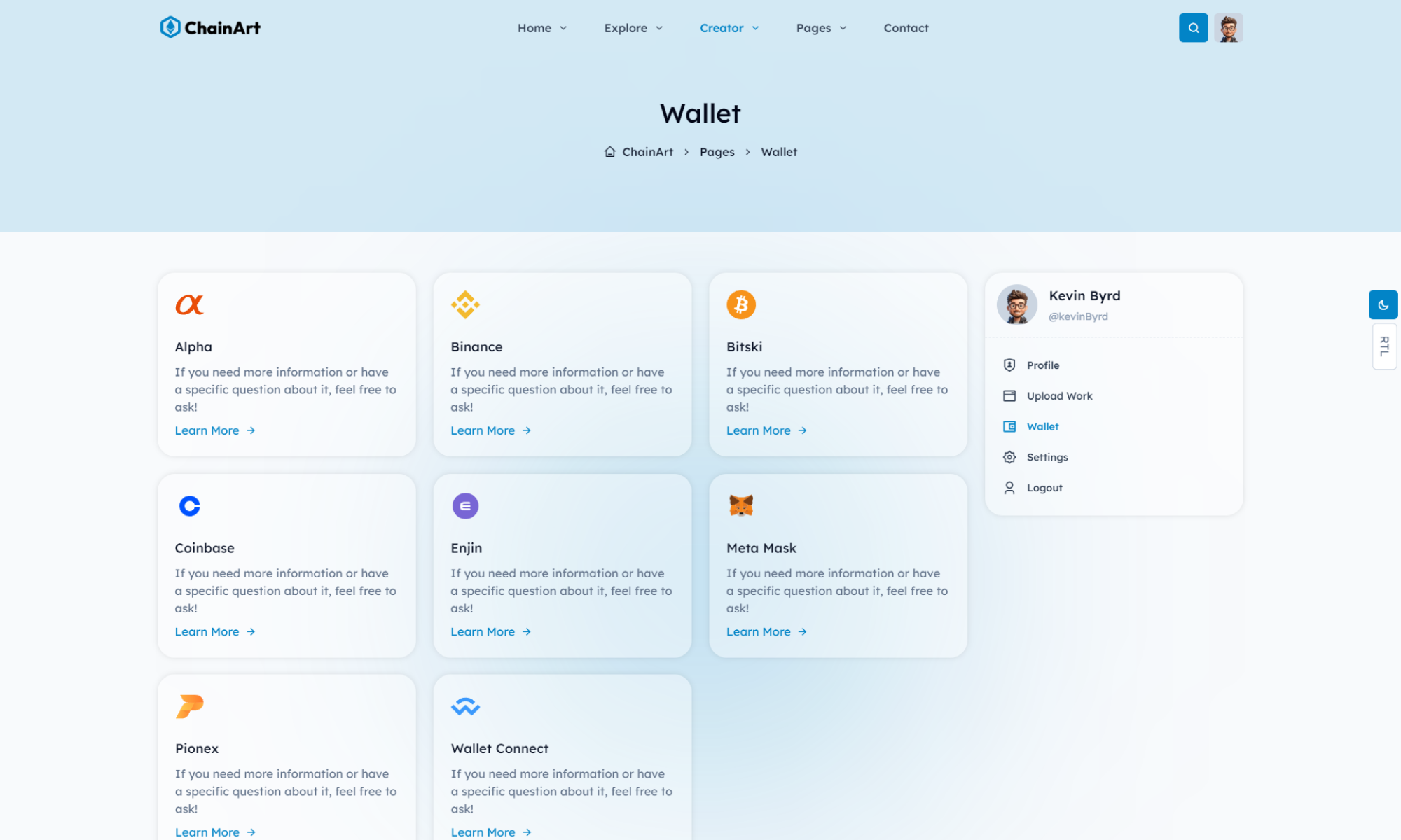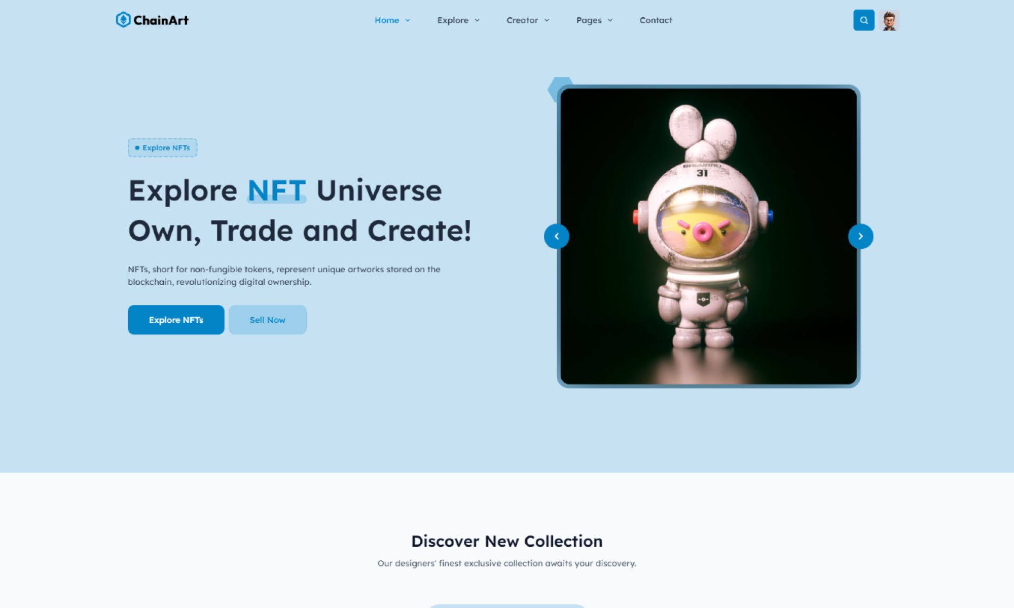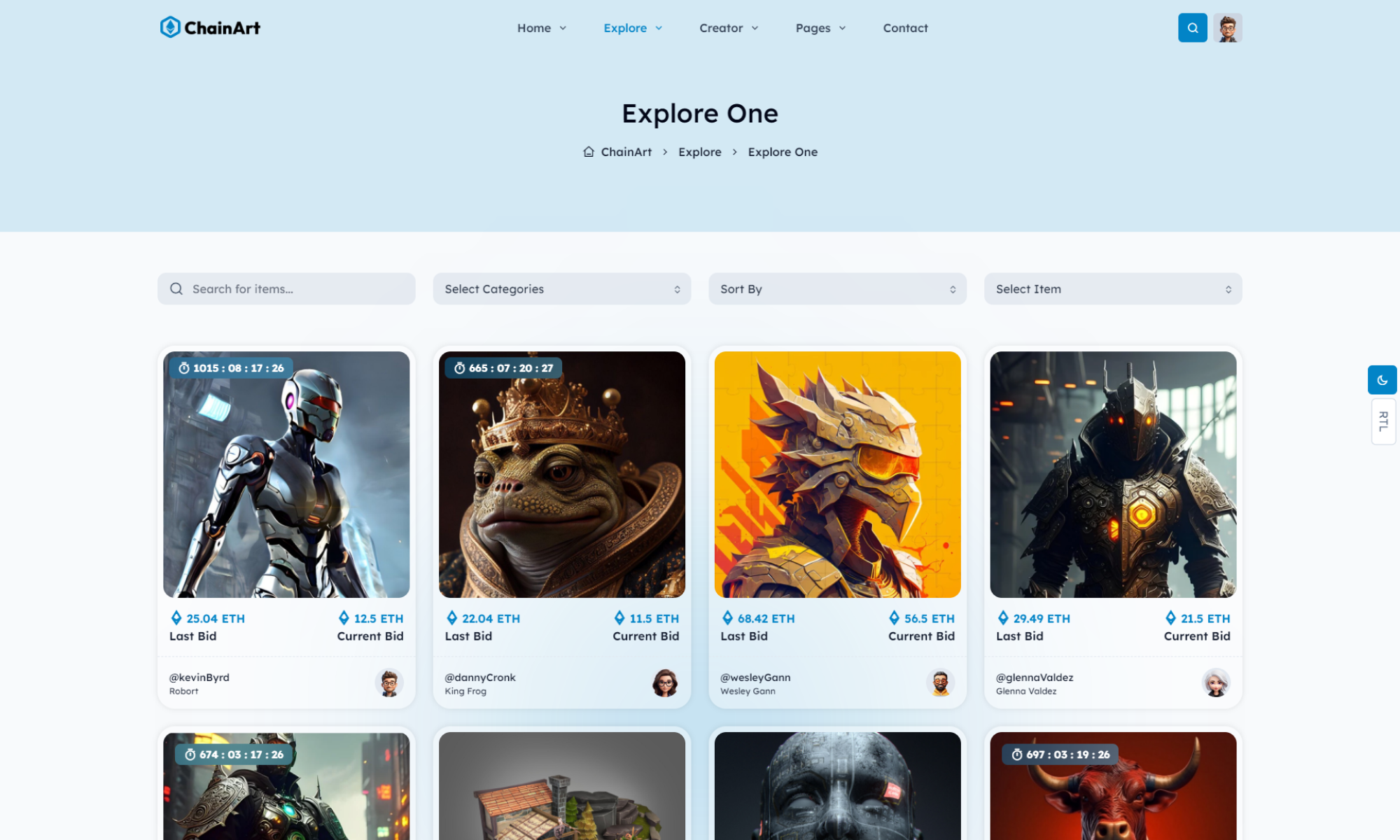 ChainArt supports right-to-left (RTL) languages on both home and inner pages. This includes Arabic, Urdu, Hebrew, Persian, and others, which are predominantly written from right to left. Many countries utilizing these languages have built their NFT websites using our ChainArt template.